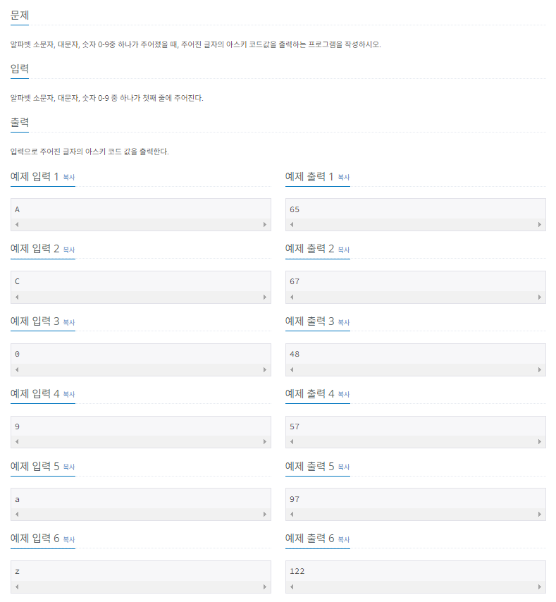 알파벳 소문자, 대문자, 숫자 0-9중 하나가 주어졌을 때, 주어진 글자의 아스키 코드값을 출력하는 프로그램을 작성하시오.